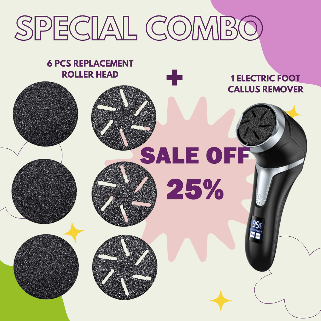 This powerful foot care set includes our top-rated callus remover device plus 6 high-quality replacement roller heads, giving you everything you need for long-lasting results.